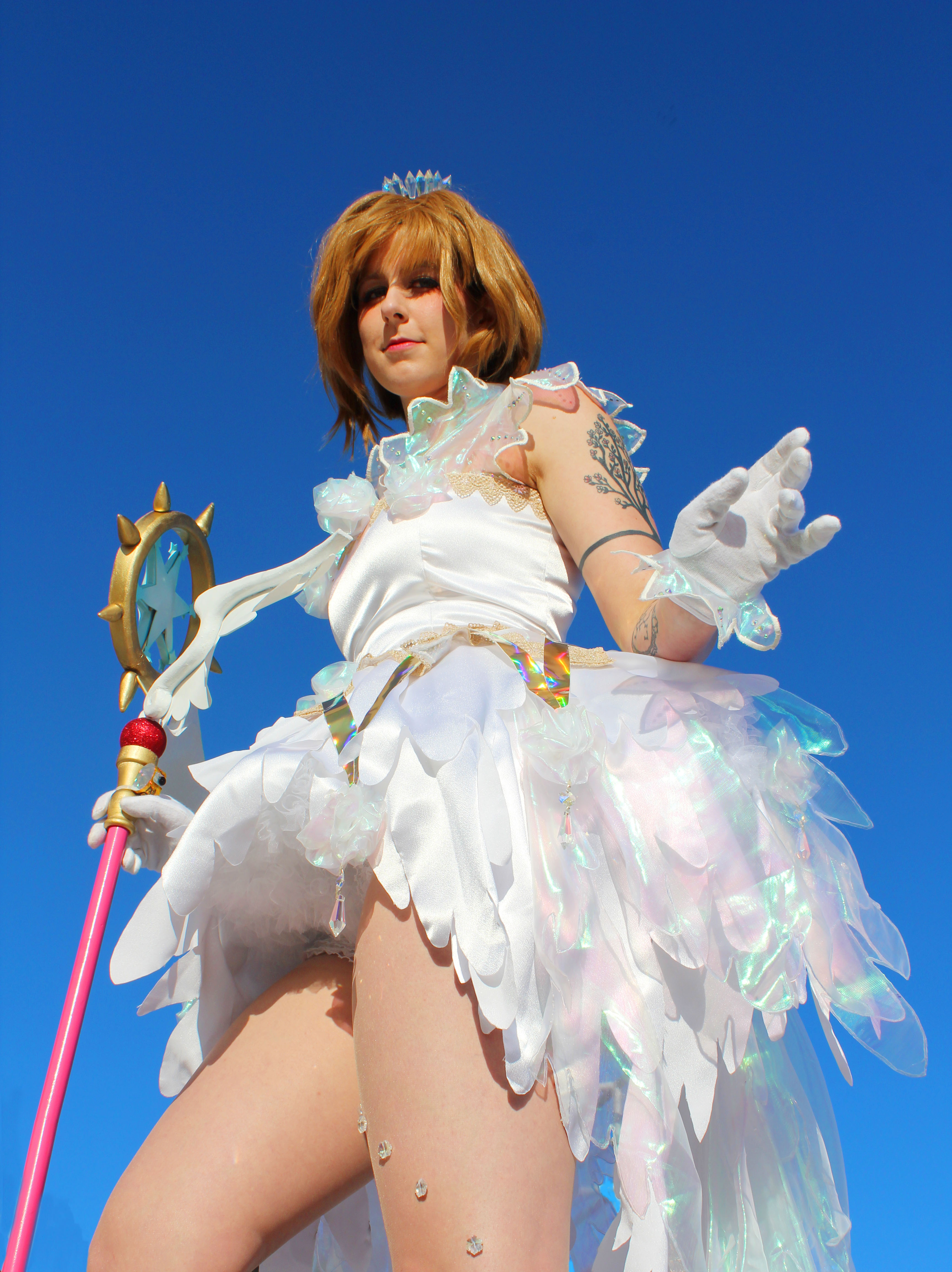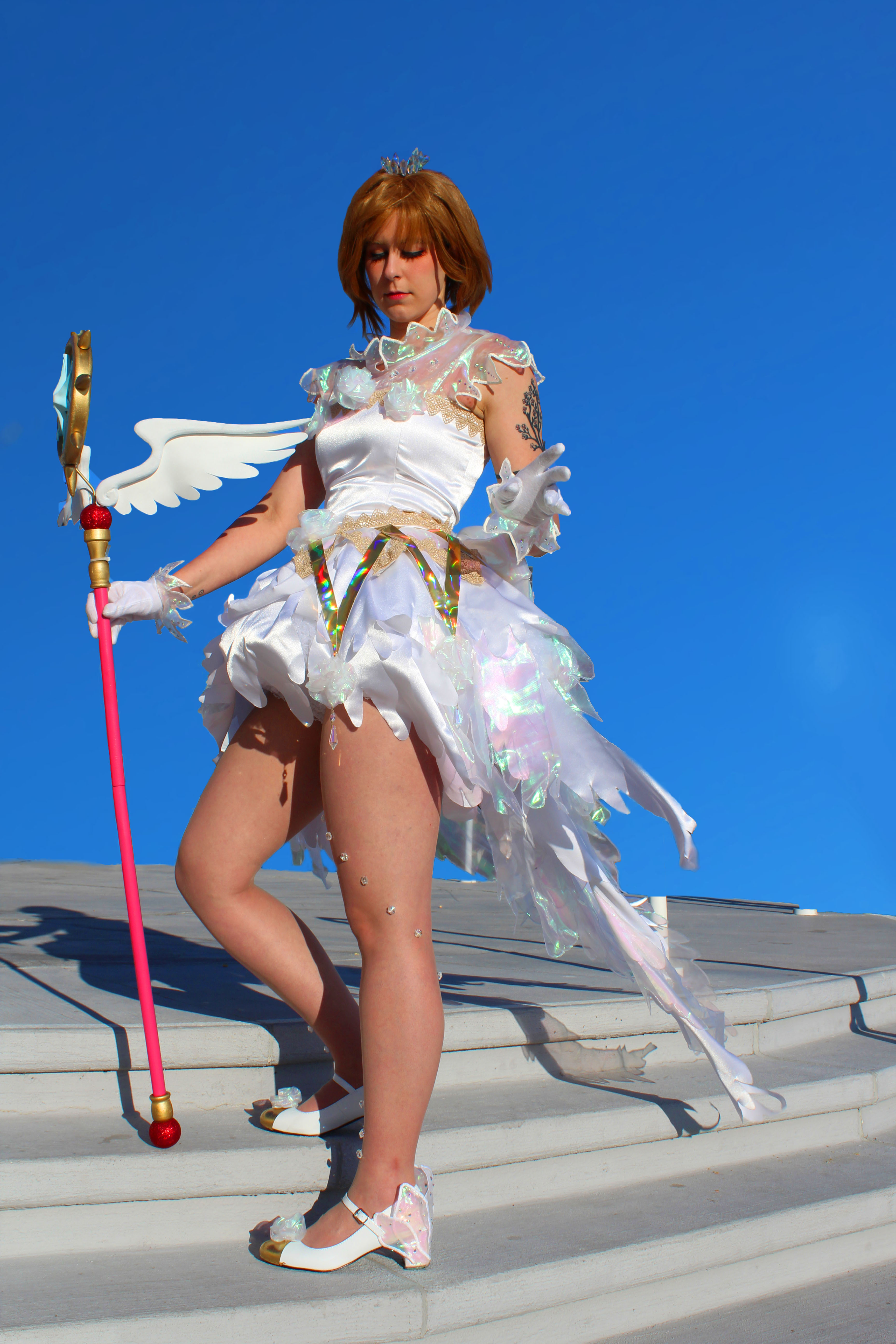 Anime seems to be a world of its own when it comes to outfit design. Everything is decked out in crystals, lace, frills, crazy fabrics, you name it. I wanted to take on the challenge of recreating one of the more recognizable costumes from the anime ‘Cardcaptor Sakura: Clear Card’, her crystal tutu. And every magical girl isn’t complete without her accessories so I wanted to make sure to create one of her cards and of course, her Staff of Dreams.