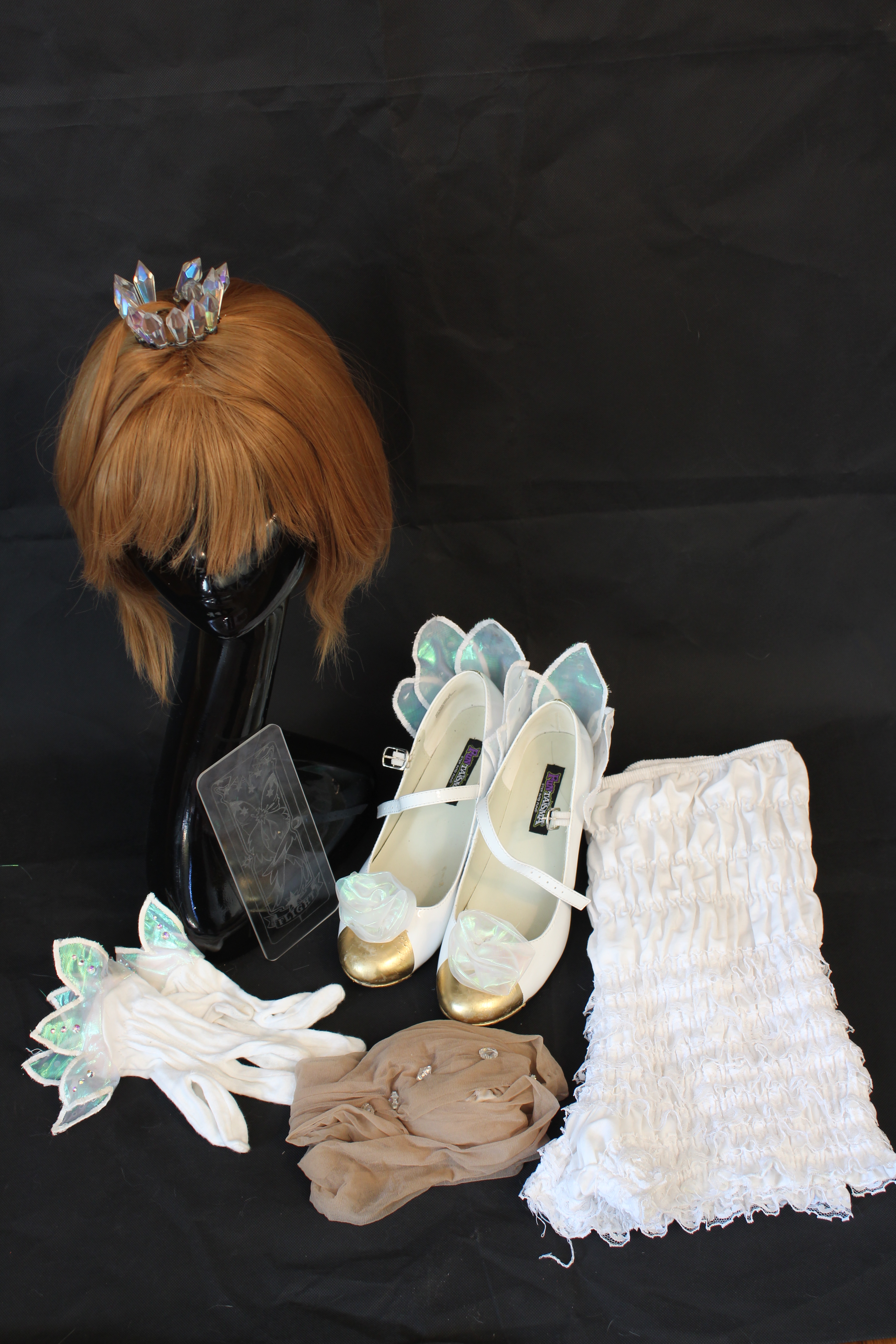 Items purchased: petticoat, pettishorts, shoes embellished by me, gloves altered and embellished by me, tights with crystals added, wig.