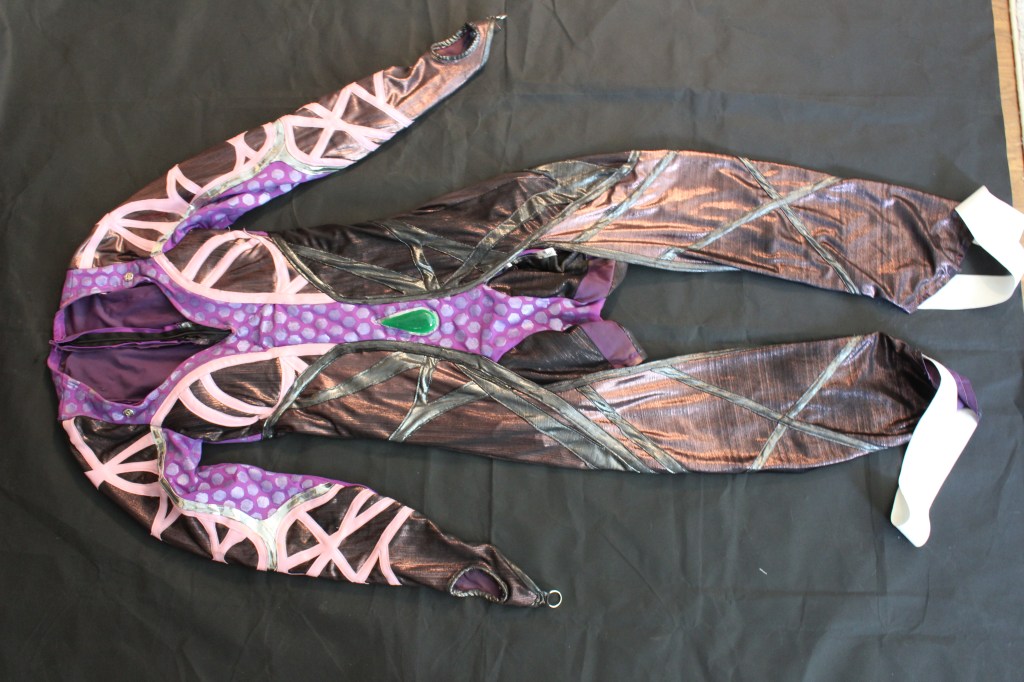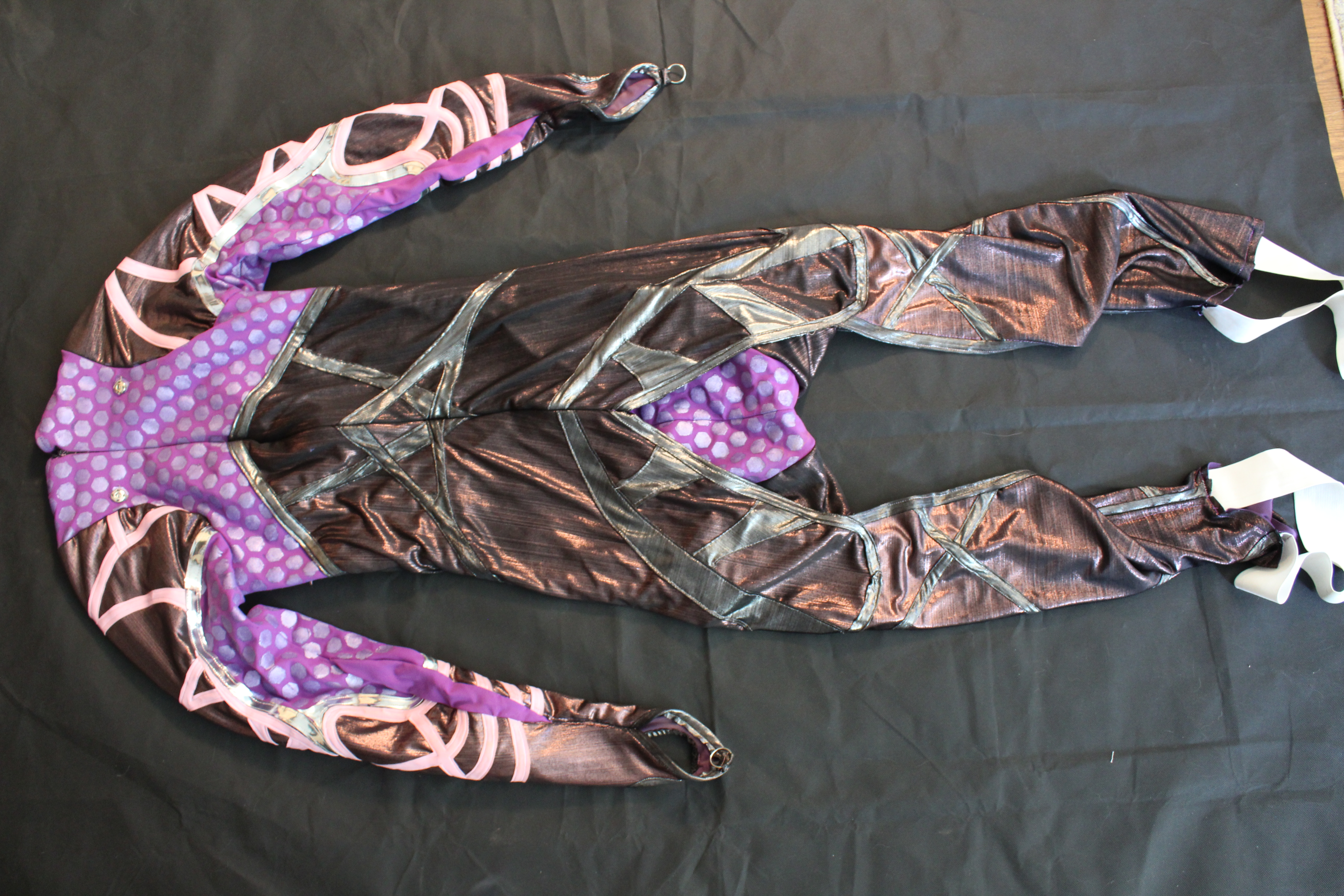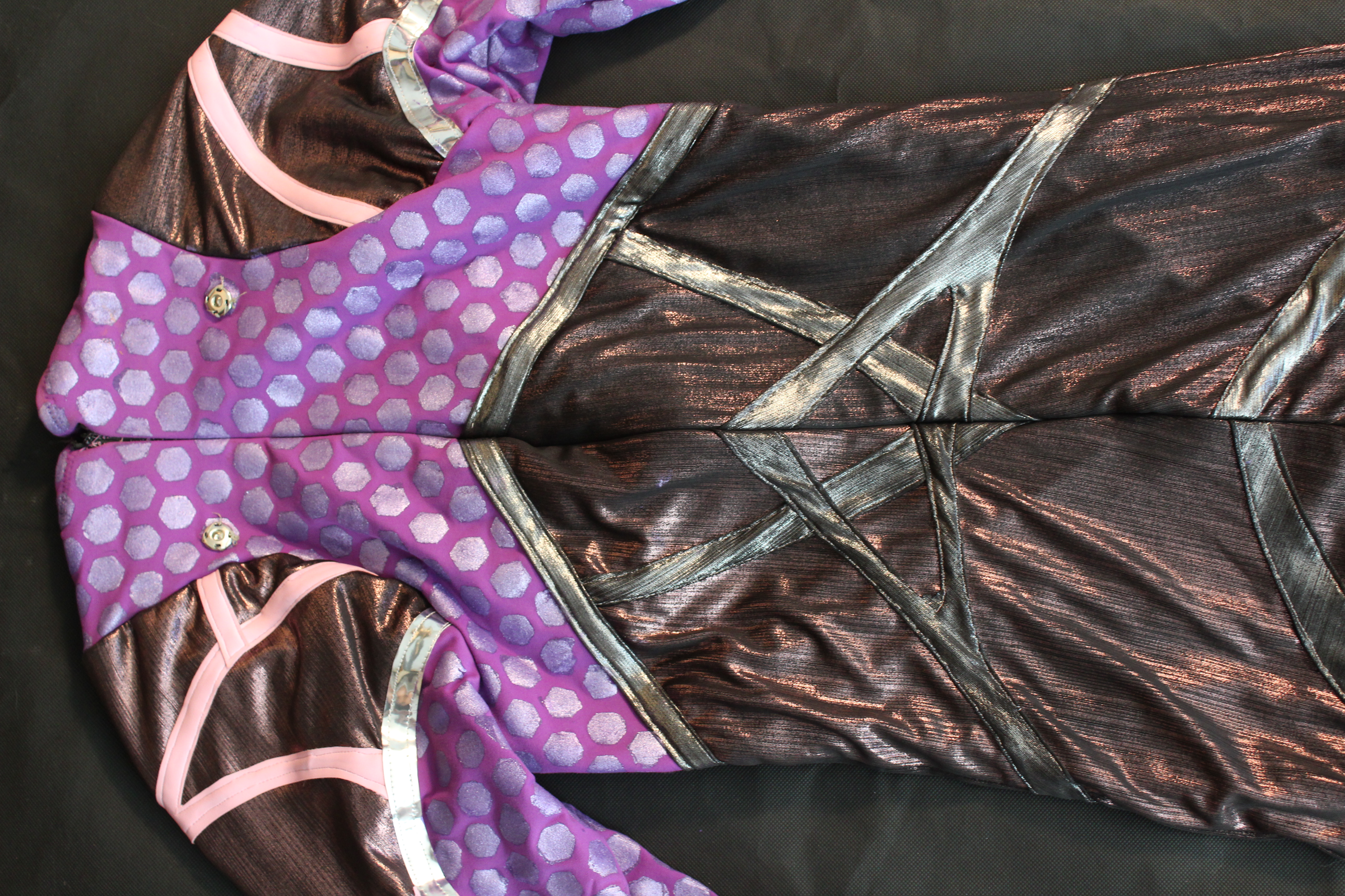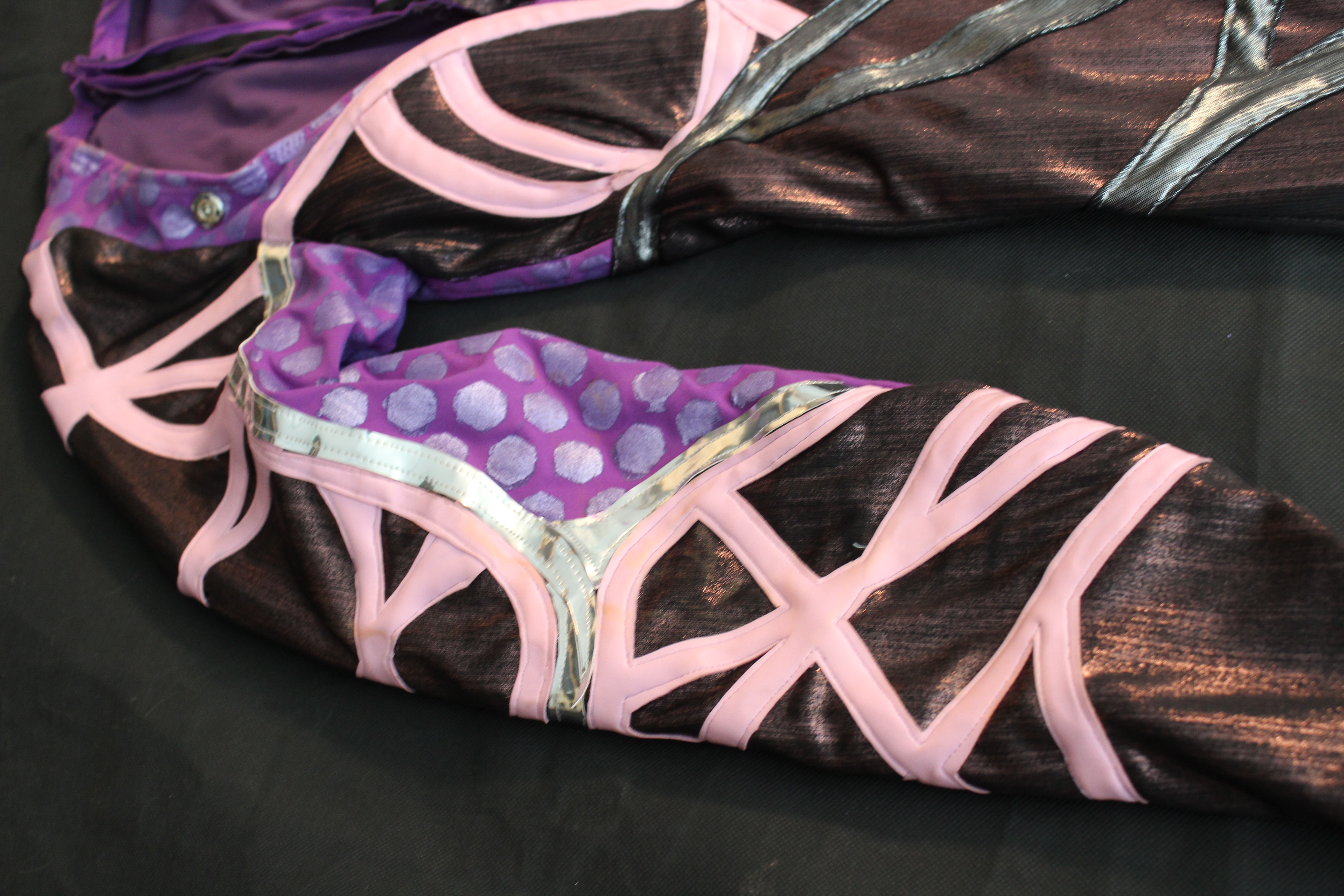 Materials used: textured spandex, lame, suede, vinyl, pu leather, eva foam, sew on gems
